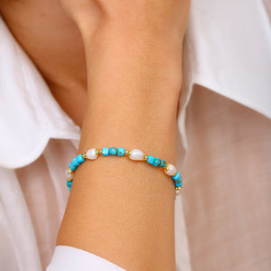 Zarif, plaj tarzı bir görünüm için doğal turkuaz boncukları düzensiz tatlı su incileriyle birleştiren, ince işçilikle yapılmış, el yapımı bir bileziği keşfedin. 🌊✨ Her taş, uzun süreli dayanıklılık sağlarken parçayı hafif ve günlük kullanım için rahat tutmak amacıyla yüksek mukavemetli, kırılmaz paslanmaz çelik tel üzerine özenle dizilmiştir.